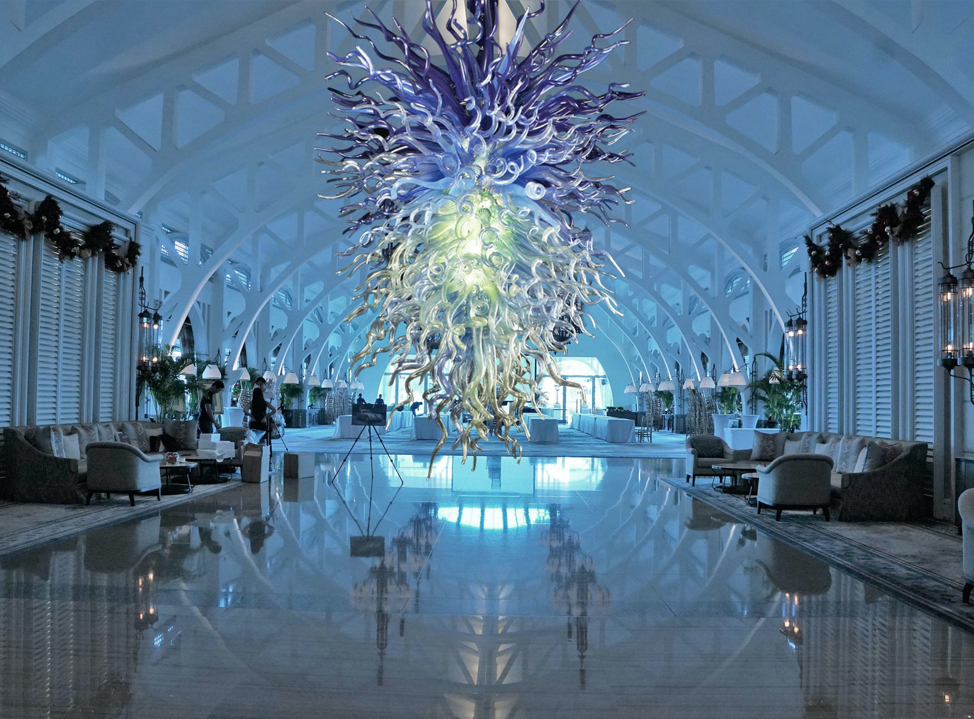 The Acquario model is a beautiful luxury modern glass chandelier. It is entirely handmade.