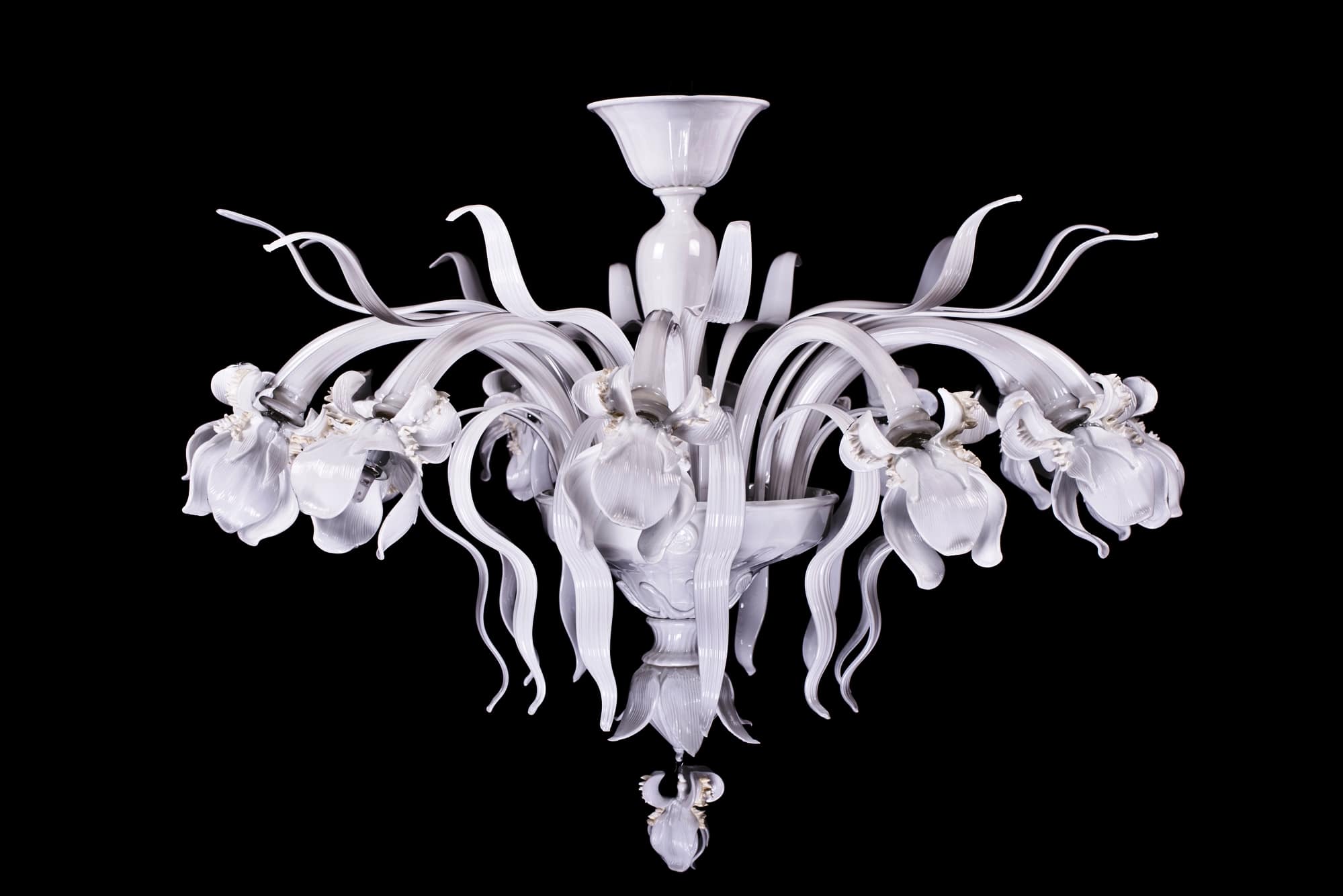 BASILIA in 12 lights is from our Impressionism Murano Glass Chandelier Line.  it is made in all White to complement any decor of your living space, it is simply beautiful.