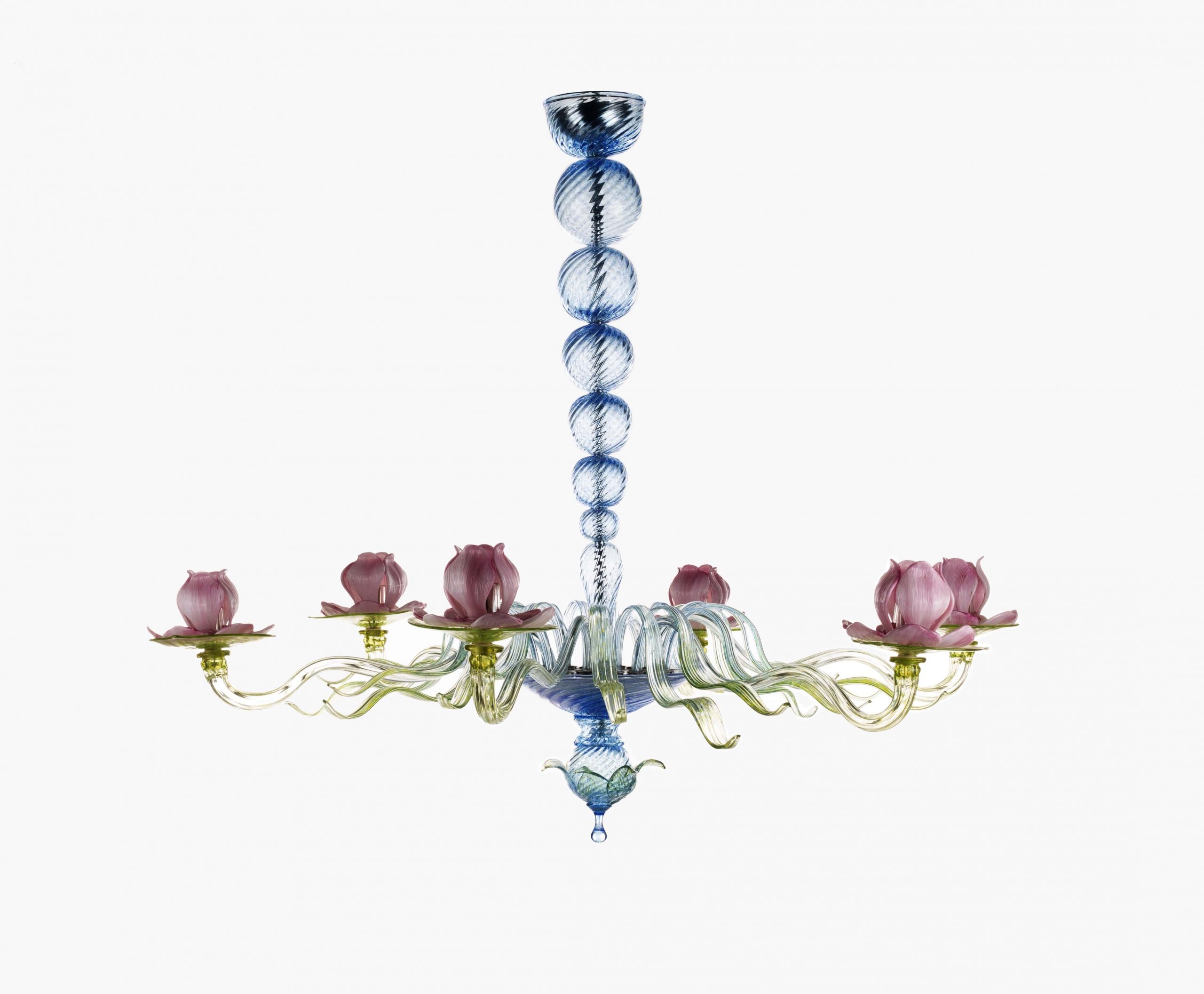 BELLA in 6 lights from our Impressionism Murano Glass Chandelier Line is a true work of art it reminds you of lilies in a pond. This is truly a breathtaking clean line chandelier that adds luxury to your living space.