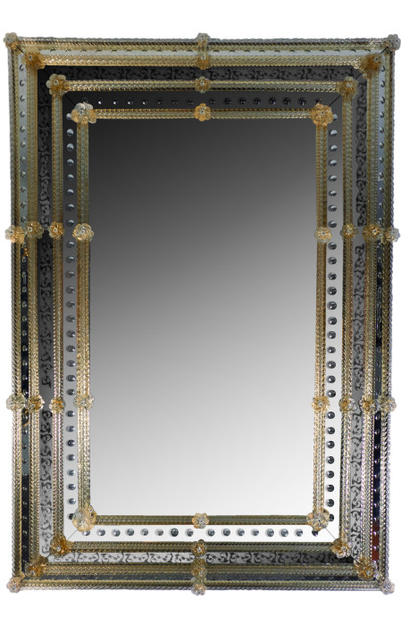 Nowadays the Venetian mirror is still exploiting decorative details to hide the load-bearing structure, transforming a very heavy to carry object and its complex architecture into a visually delicate and absolutely elegant piece.