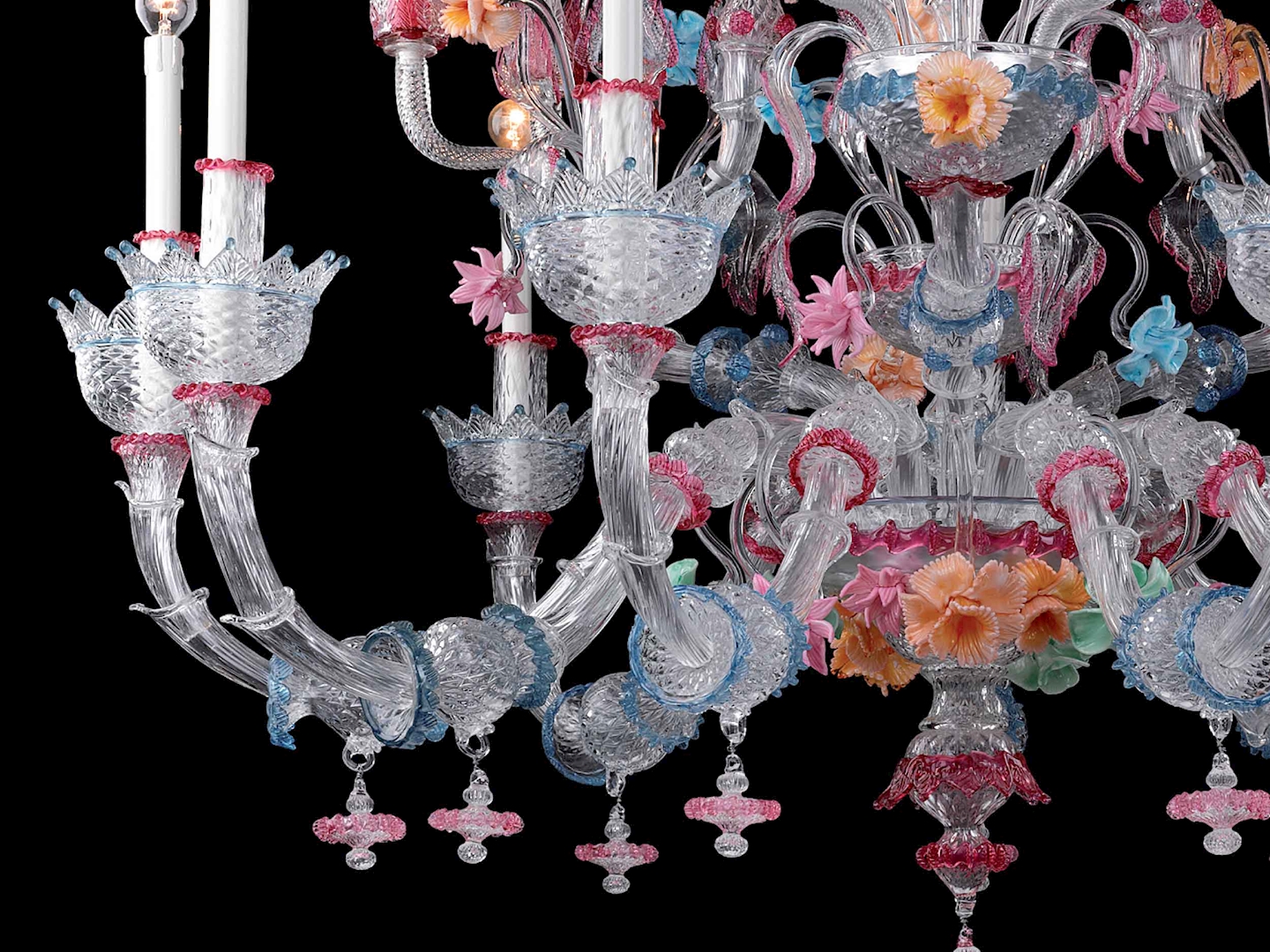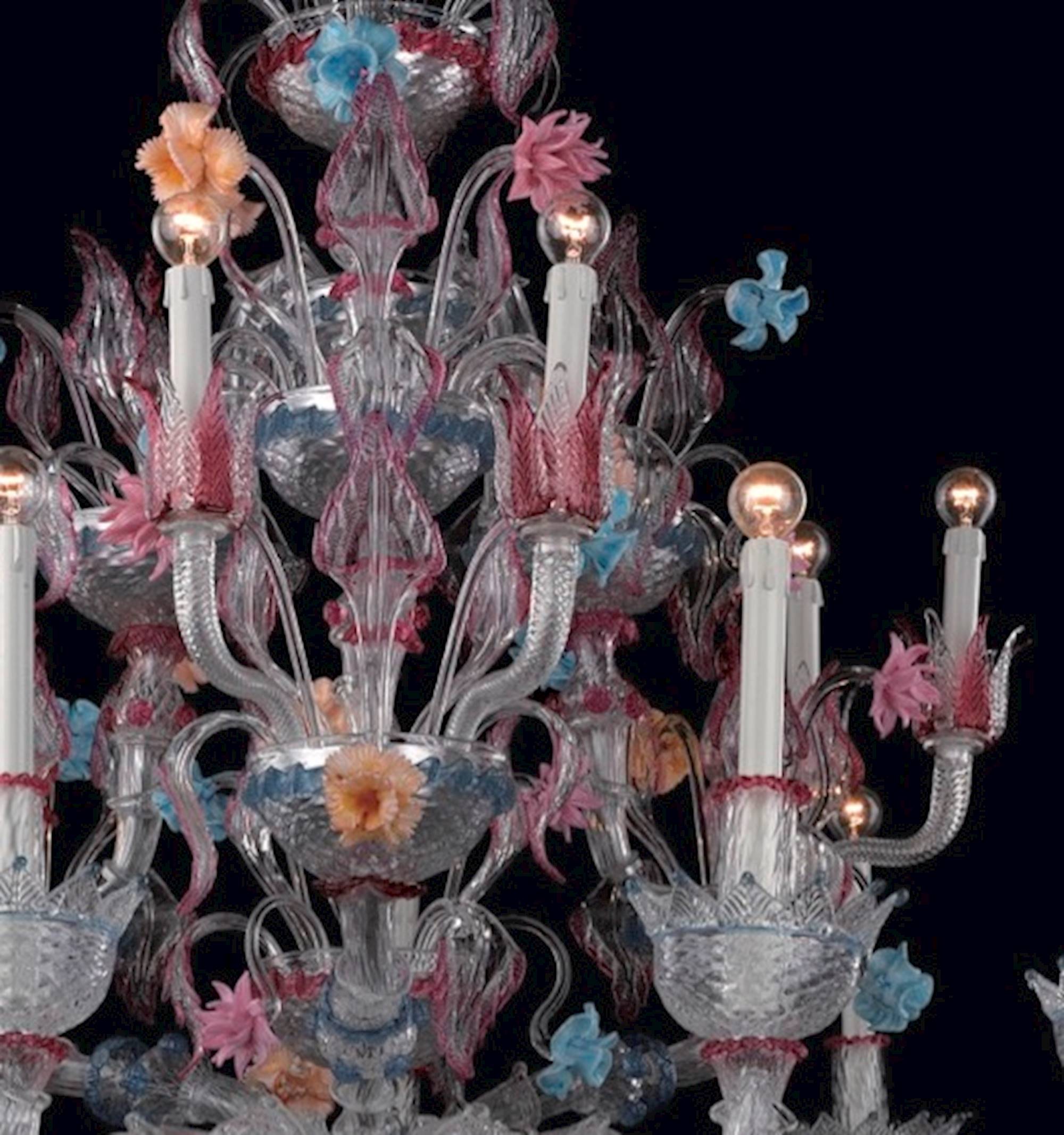 The Canovio chandelier is a beautiful and colorful model by Cà Rezzonico, part of the Luxury collection. This luxury lighting model is entirely handmade by our glassmasters.
