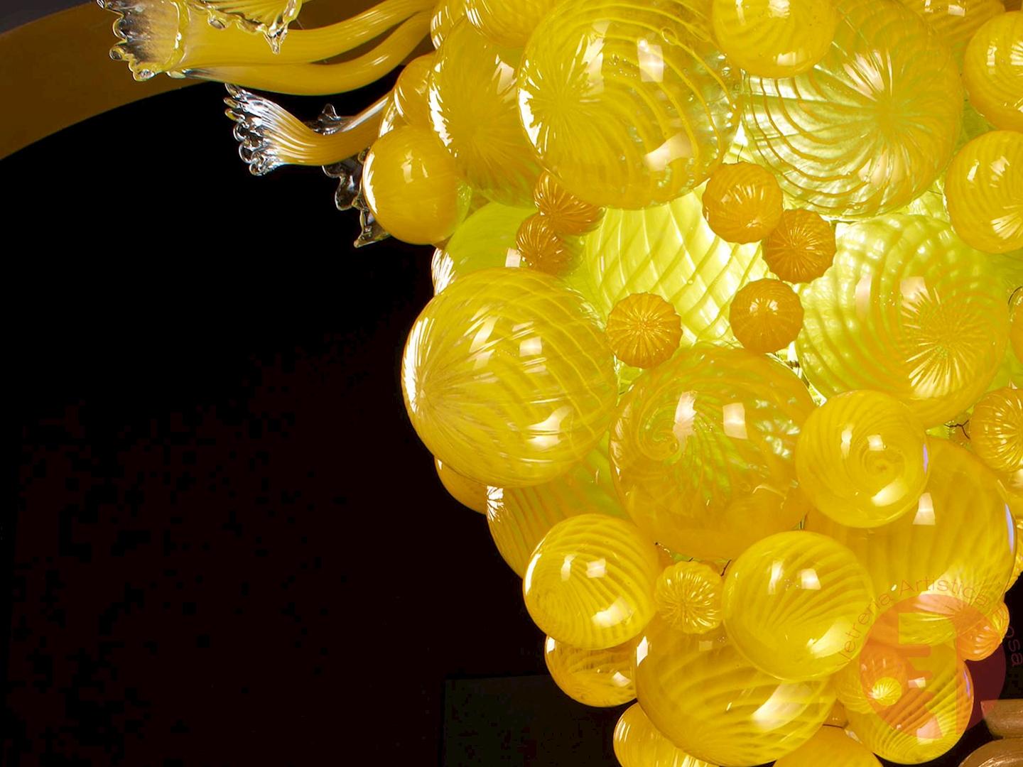 The Lemon chandelier is an original model of the modern collection, made entirely by hand by the Masters of the Pink Glass Factory.