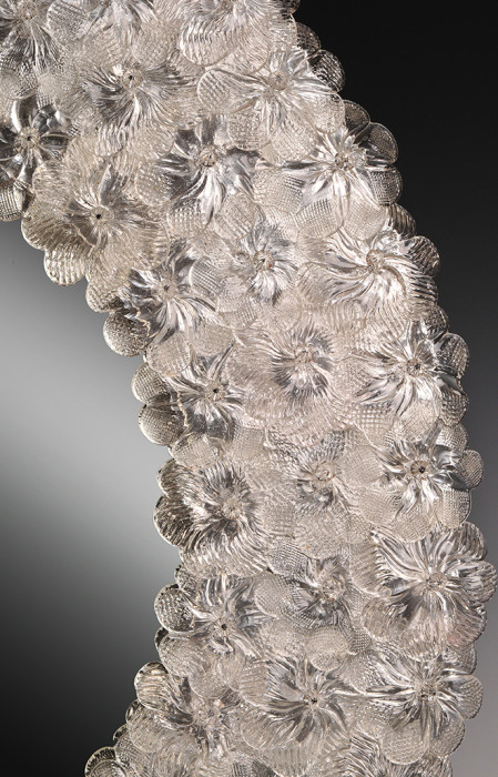 This Luna mirror with its handmade glass flowers gives the room a magical and delicate light.