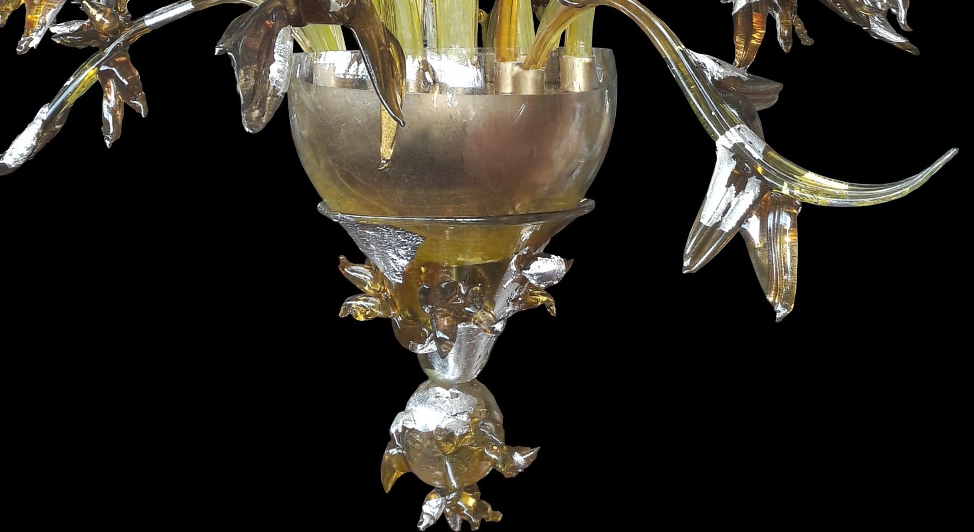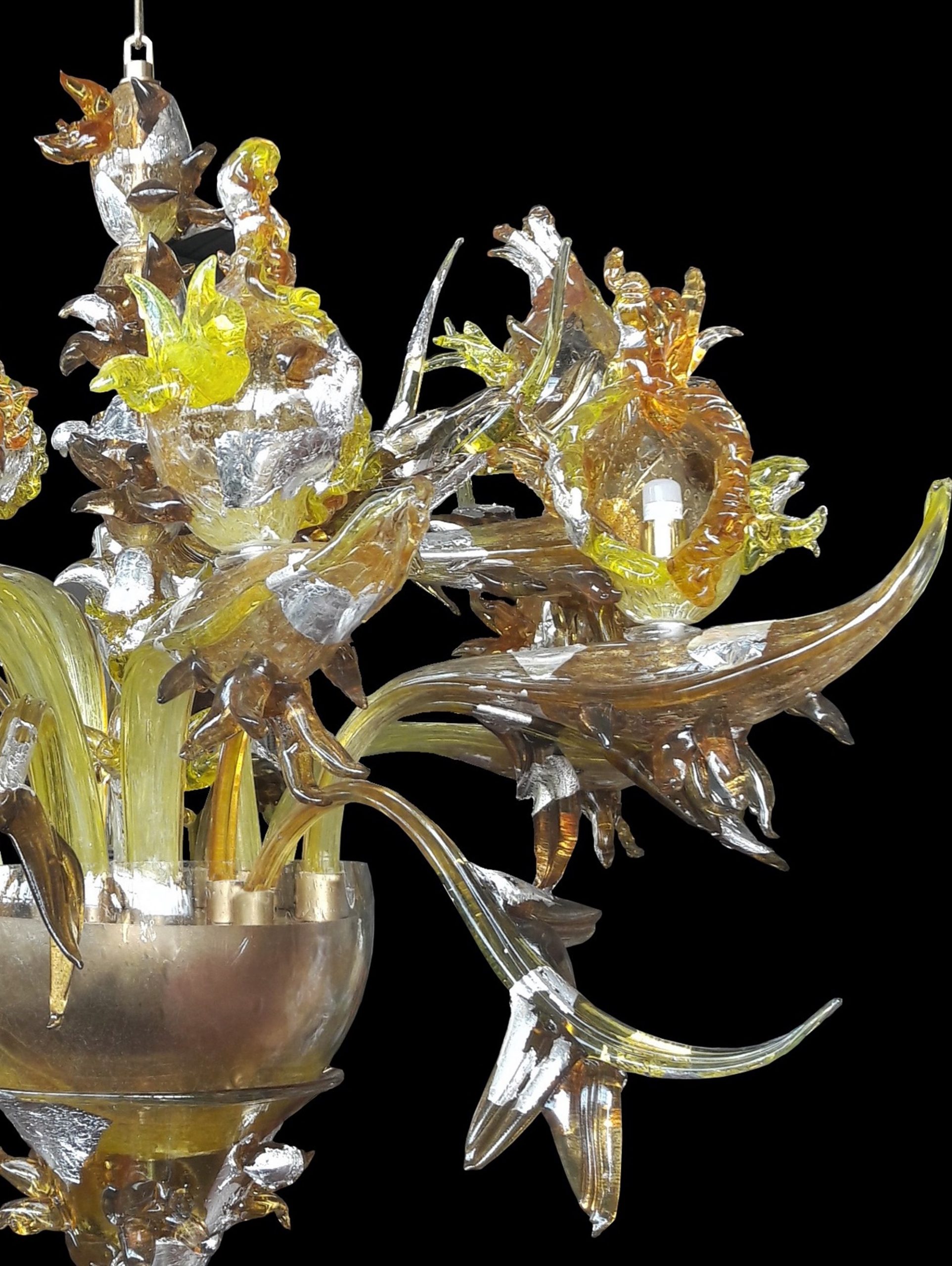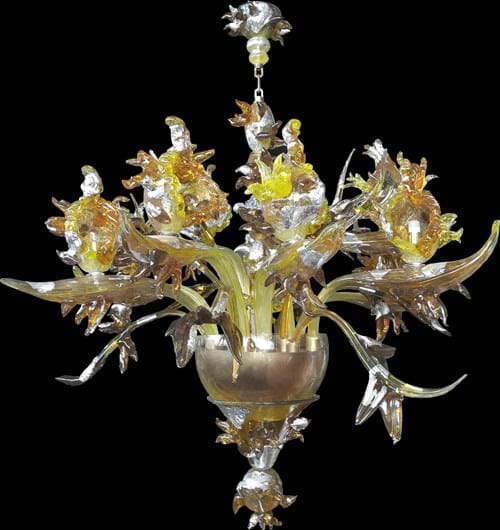 The Maremma modern chandelier, a refined and elegant model, is made of amber, yellow and orange crystal.