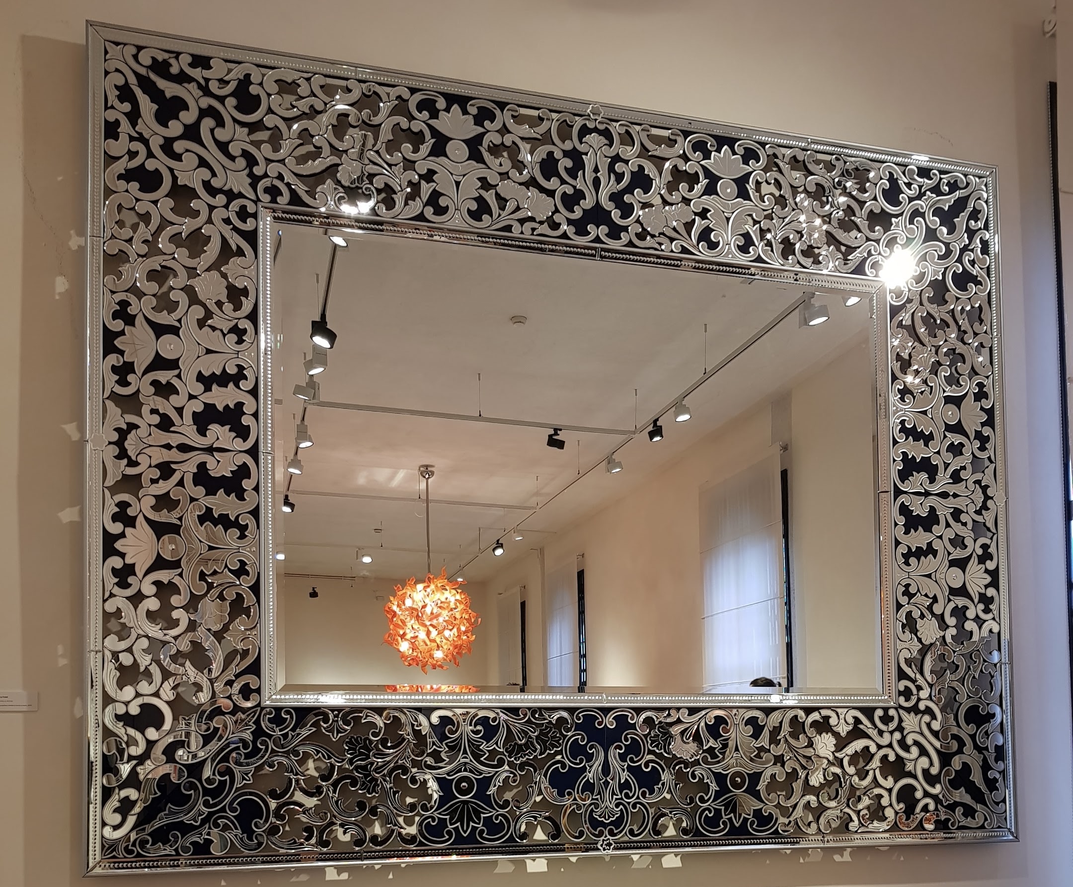 “Merletto” is a unique mirror, specially designed for the Murano Glass Museum and now produced in a limited series of products. The mirror takes over a month of work to complete. Its details and its design recall the traditional Burano lace, but being produced in glass is made as shiny as a precious stone.