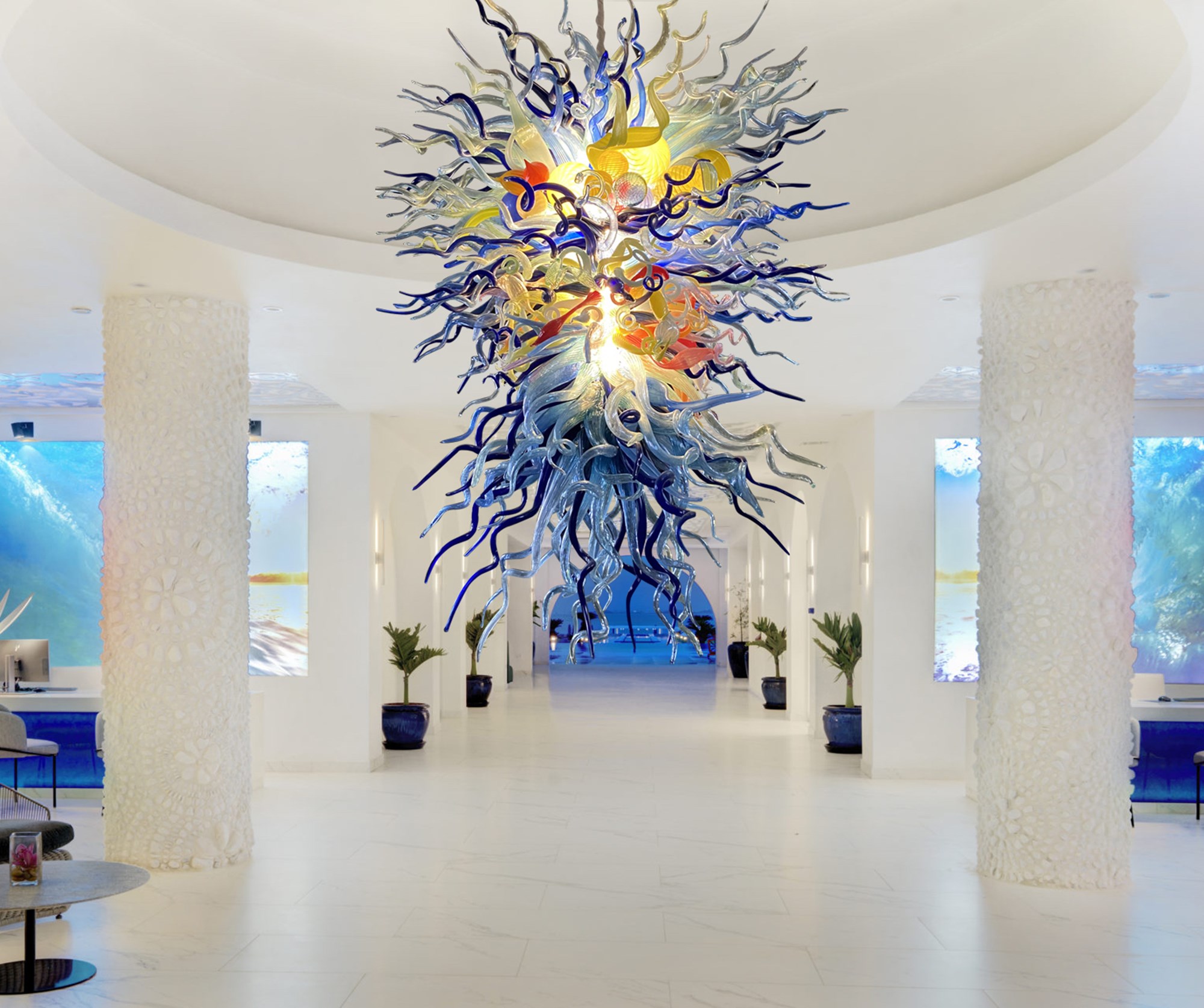 This majestic Moden glass chandelier belongs to our modern collection, was entirely handmad.