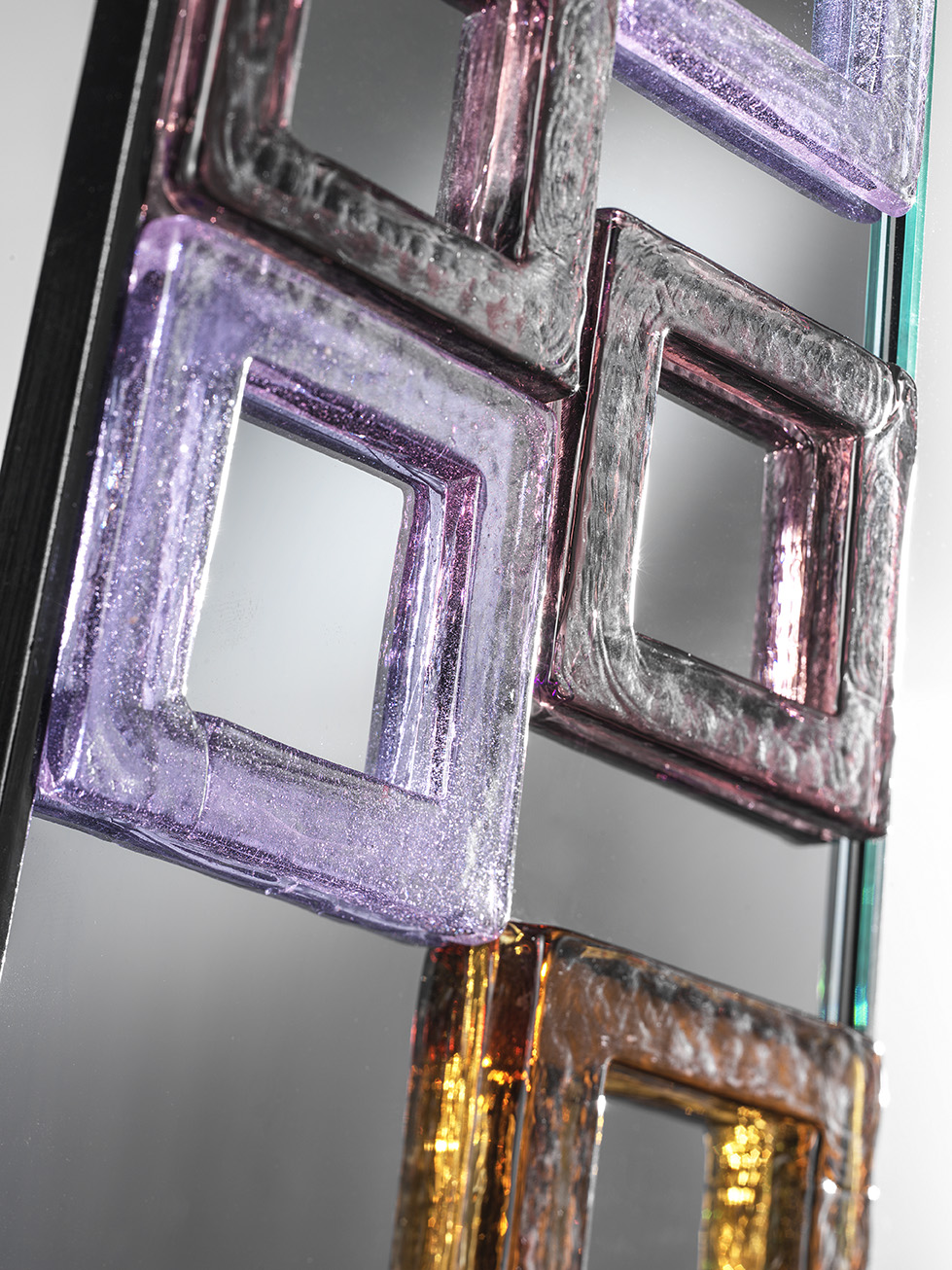 The colors and thw squared effect of this mirror make it able to underline and enhance the interior design of your living room, bedroom and bathroom. His geometry will give an extra touch to your room.