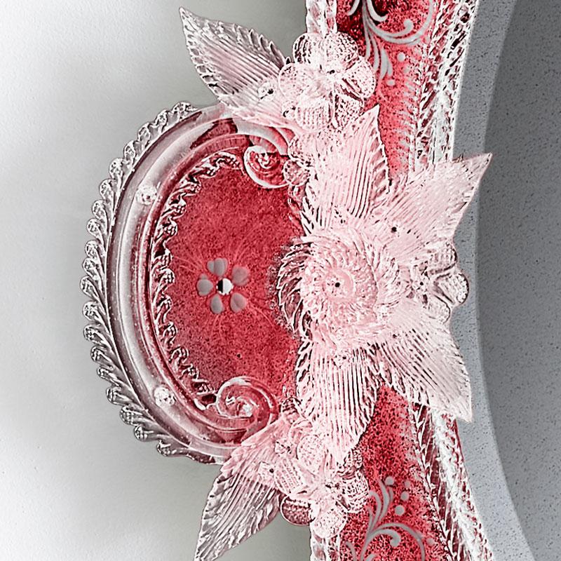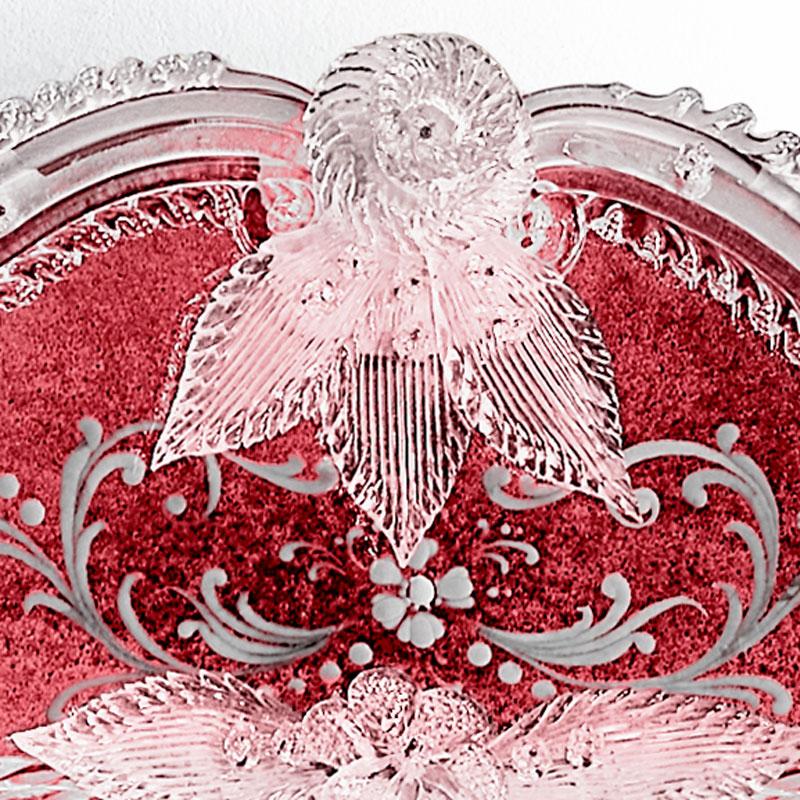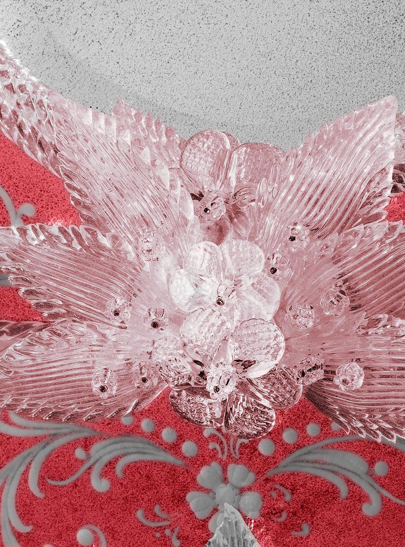 Decorative leaves, curls and rosettes made of crystal-red colored Murano glass.