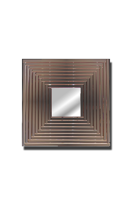 The modern style of this mirror is characterized by a perfect square shape and the elegant and enchanting amber color. Every band which makes it reflects the light illuminating the room and giving it a warm and elegant mood.