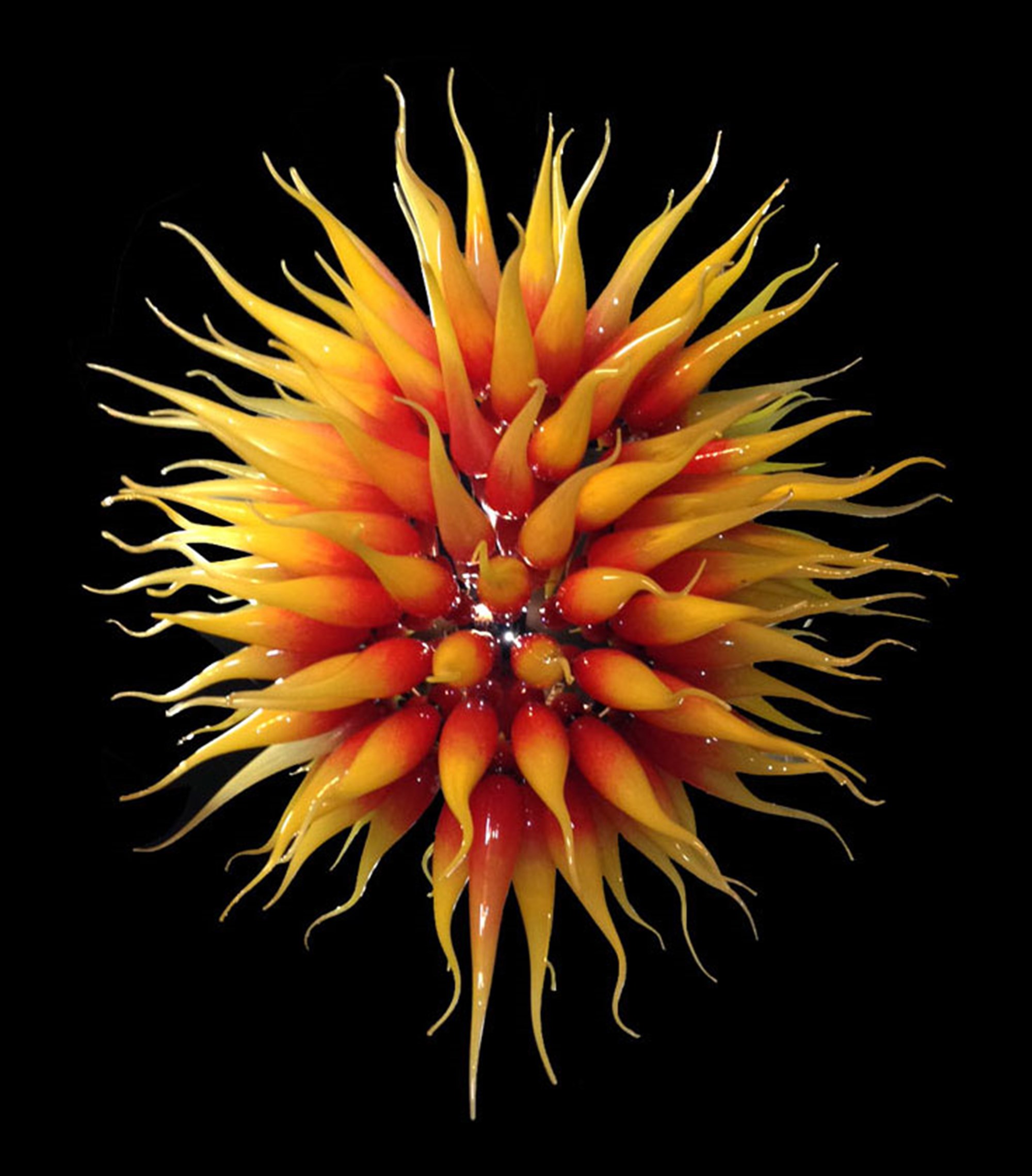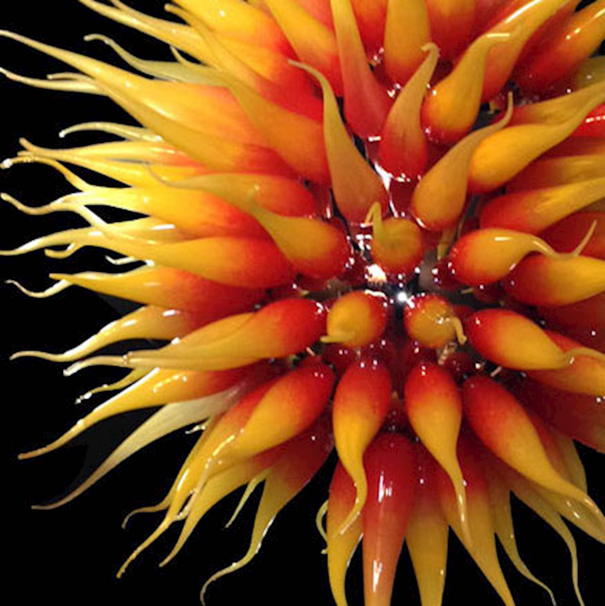 The modern Sun chandelier has a particular structure consisting of a central “body” to which the glass “flames” representing the sun’s rays are screwed.
